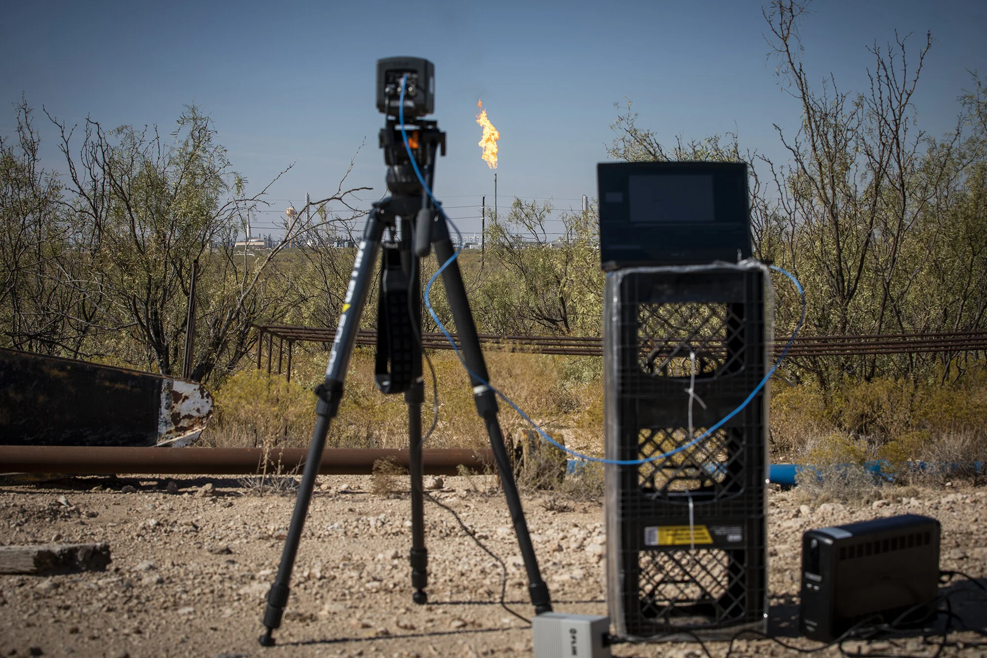 The flights provided them with data indicating precisely where massive emissions were happening, in real time, including GPS locations. The two reporters quickly hit the road, driving deep into Texas oil country with their specialized infrared camera to see what it might reveal about the scope and volume of the leaks.